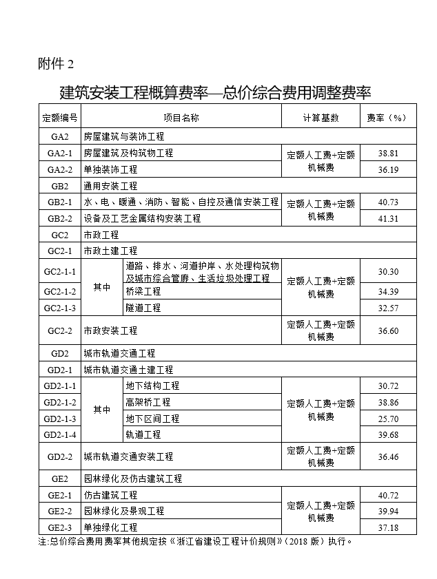 三、调整后建筑安装工程的安全文明施工基本费费率见附表一,概算的总价综合费用费率见附表二。
