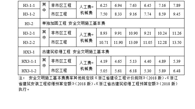 二、调整后的费率已包含《省建设厅关于调整建筑工程安全文明施工费的通知》(浙建建发〔2022〕37号)中的调整系数,不再重复计取。